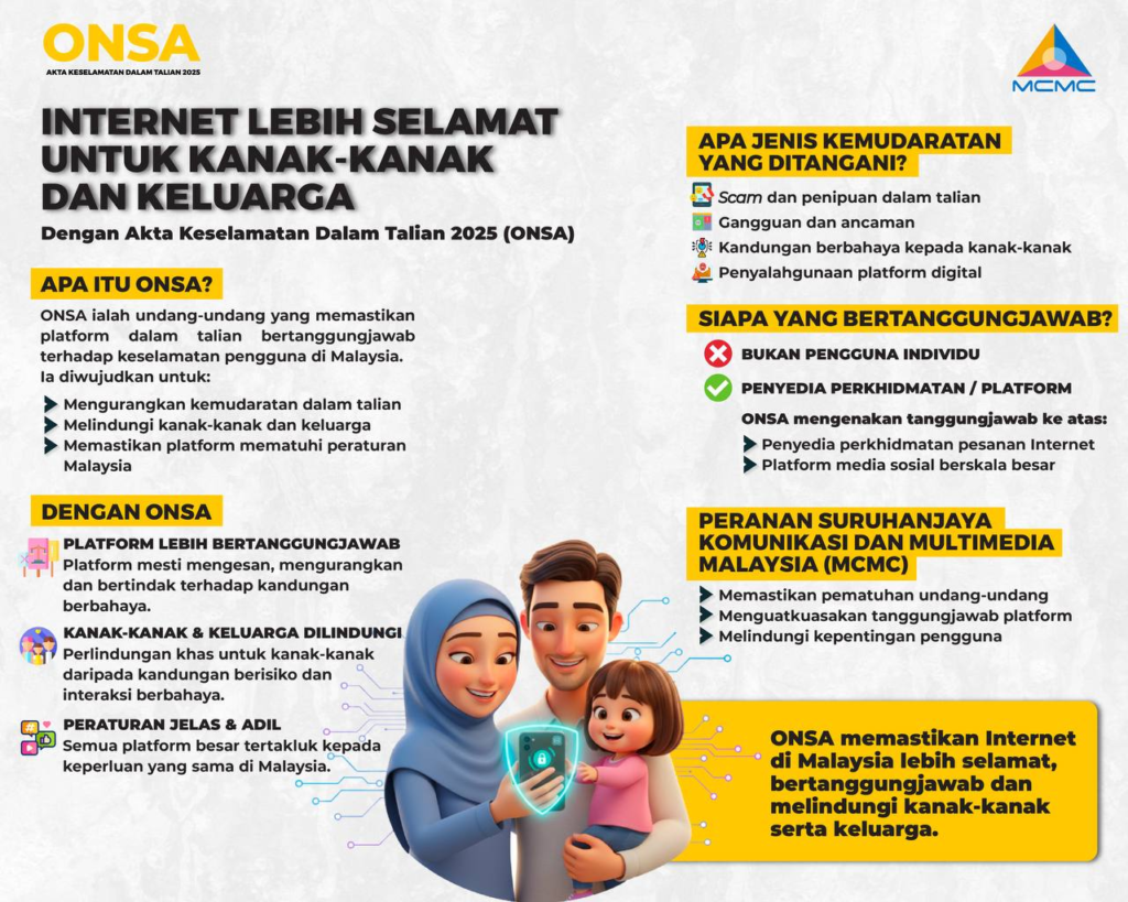 Akta Keselamatan Dalam Talian 2025 (ONSA) memperkukuh tanggungjawab platform digital demi keselamatan pengguna.