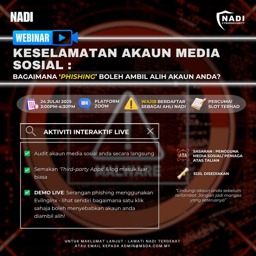 ๐ Pautan Pendaftaran: cybersecurity.nadi.my (untuk ahli NADI sahaja)